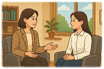 상담가의 질문에도 충분히 생각한 뒤 조심스럽게 문장을 꺼낸다.