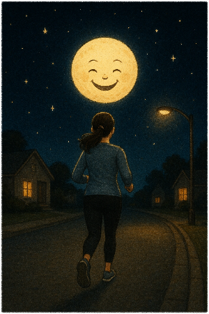 집으로 돌아오는 길, 달 대신 가로등 불빛이 인도를 비추고 있었다.