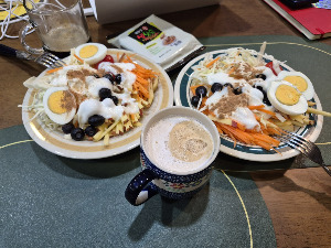 ▲우리 부부의 주말 아침 느긋한 건강 브런치.우리 부부의 아침식사메뉴. 남편은 낫또까지 꼭 챙겨 먹는다. ⓒ 이수정