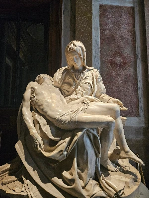 나는 피에타의 못 박힌 예수의 발을 눈길로 어루만지며 잠시 기도를 했다.