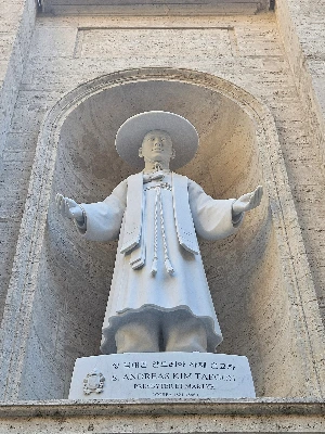 이번 바티칸에서 가장 가슴 뿌듯했던 것은 바로 김대건 안드레아 신부님의 성상이 성 베드로 성당에 자랑스럽게 세워져 있었던 것이다. 작년에 설치되었는데, 바티칸 최초의 아시아 성인의 성상이라고 하니 더욱 어깨가 으쓱했다. 성 베드로 성당 입구 외벽에 당당히 자리하고 있는 김대건 신부님의 성상. 그 앞에서 한참을 우러러보고 두 손 모아 기도를 드렸다. 모습도 얼마나 자애로운 형상인지, 마치 성광이 비치는 듯했다. 단정히 갓을 쓴 모습에 한복 두루마리 도포 차림 위로 가톨릭 성의를 어깨에 걸치신 채 두 팔을 자애롭게 벌리신 모습이 인자해 보였다. 해외여행에서 한국의 위상이 점점 높아지는 것을 실감하는 이때에 이번 바티칸에서의 김대건 안드레아 신부님의 성상을 마주하는 것은 한국인으로서의 자부심을 더욱 상승시켰다.