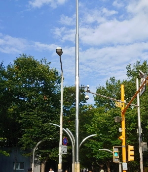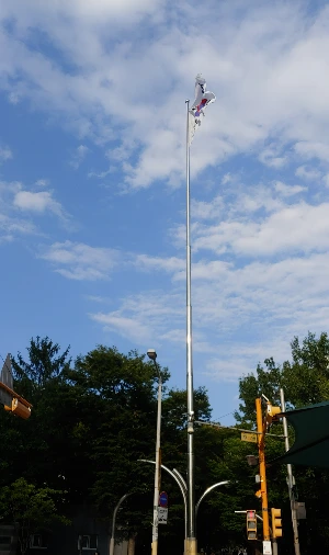 태극기를 보던 눈길을 따라 내려가니 높다란 철기둥이 횡단보도 위 보도블록 위에 딱 자리 잡고 있다. 그냥 특별할 것도 없고, 눈에 띄지 않는 철기둥이다. 사실 이 기둥도 그동안 있었는지 모를 정도로 내게는 인식이 안되었던 물체이다. 그러니 이 기둥이, 또한 기둥 저 높은 곳에 휘날리는 태극기가 과연 십 년 전부터 있었었는지, 어느 시기에 새로 설치한 것인지도 전혀 알 길이 없다.