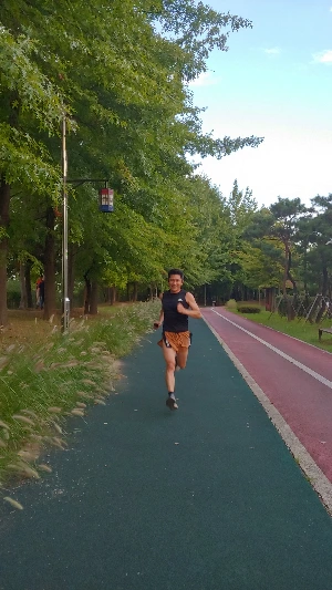 당신도 손을 흔들고는 다시 뛰던 자세를 유지하며 뛰어 오네.