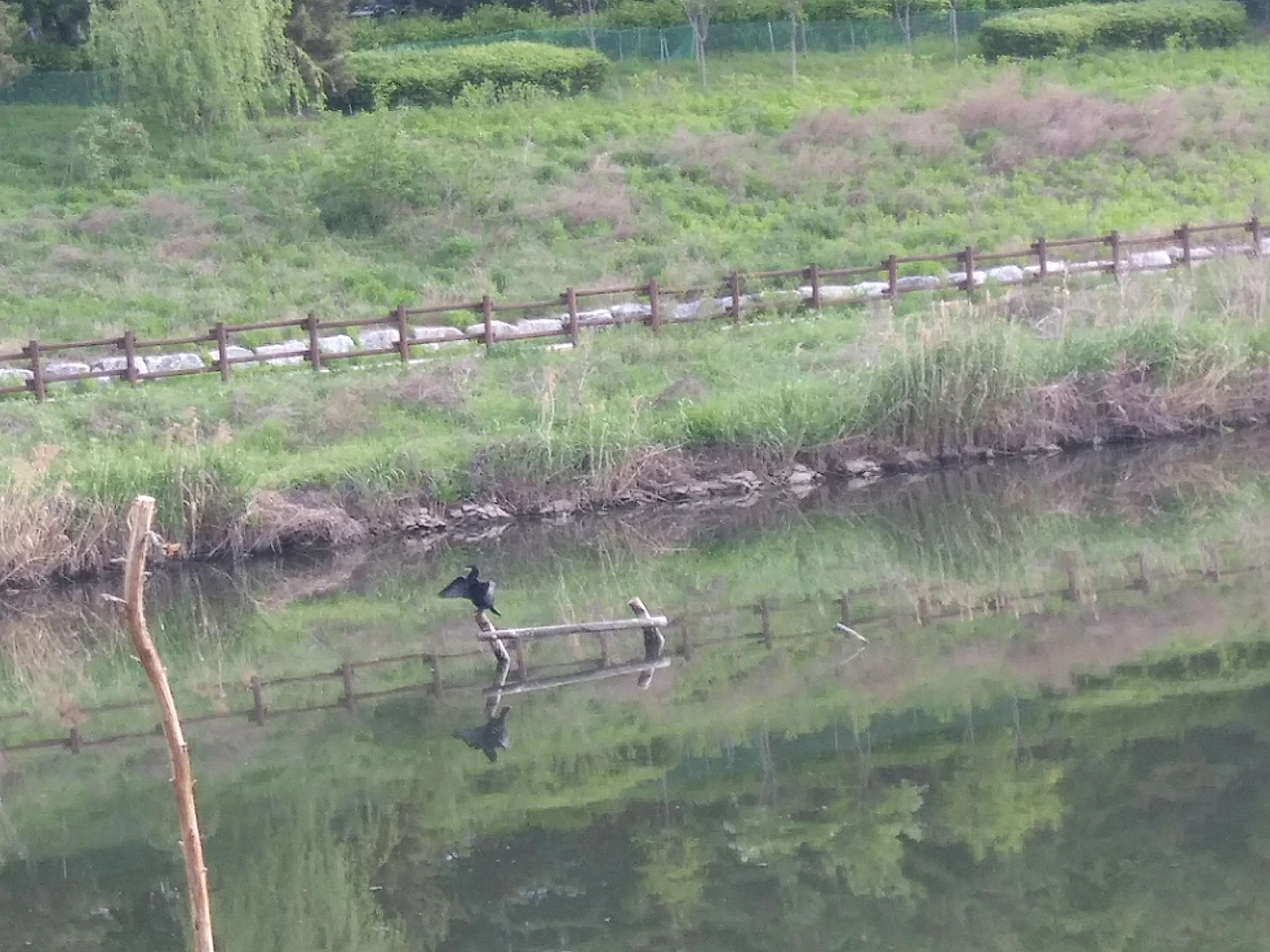 갈대들숲은 잔바람이 지날 때 살랑거리며 춤을 추다가 사나운 바람이 지날 때 쓱쓱 소리를 내고 거칠게 고개를 흔들며 춤을 추었다. 중간쯤 걸었을 때 가마우지를 만났다. 가마우지는 물속에 쑤욱 들어가 고기를 물고 나왔다. 고기로 배를 채운다음 나무 위에 검은 날개를 펴고 물기를 말리고 있었다.. 그 모습은 불량배들이 길을 막고 통행세를 내라고 하는 것 같았다.