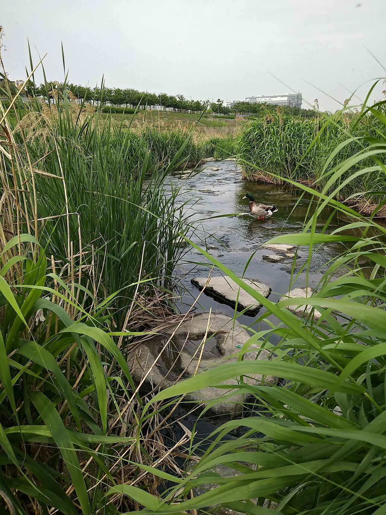 누구를 기다리는 것일까?. 어슬렁이며 서성대는 모습이 외로워 보였다. 그 녀석을 볼 때마다 애잔하고 안쓰럽기까지 했다. 가족을 잃고 기다리는 것인지 왕따를 당해서 무리들하고 아울리지 못한 것 인지 몹시 궁금중을 일으키고 있다. 언제쯤 청둥오리는 풀숲 오두막집을 벗어날까? 이제 그만 친구들과 어울려 주기를 바라고 있다. 이쁜 청둥오리야 풀숲 오두막집에서 벗어나 친구들 따라 외로움에서 벗아나기 바란다.