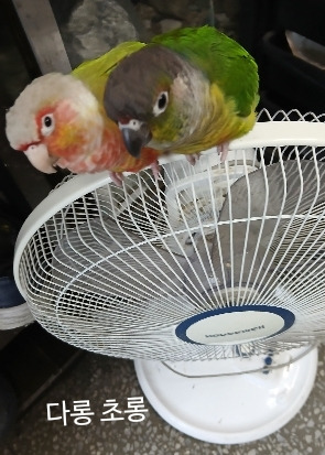 처음에는 사람들 경계도 많이 했지만 지금은 조용해 하면 조용하고 식사시간에 밥을 먹으면 빨리 밥 달라고 난리법석이다. 나를 부르는 소리, 남편을 부르는 소리, 반가워하는 소리가 다르다. 다롱이는 남편을 좋아해서 새장 앞에 남편이 있을 때 초롱이가 매달려 있으면 비켜 달라고 초롱이를 발로 차고 부리로 쪼아 못된 짓을 한다. 초롱이는 나를 좋아하고 믿고 있다. 내가 옆에 있을 다롱이한테 당당하고 겁도내지 않는다.