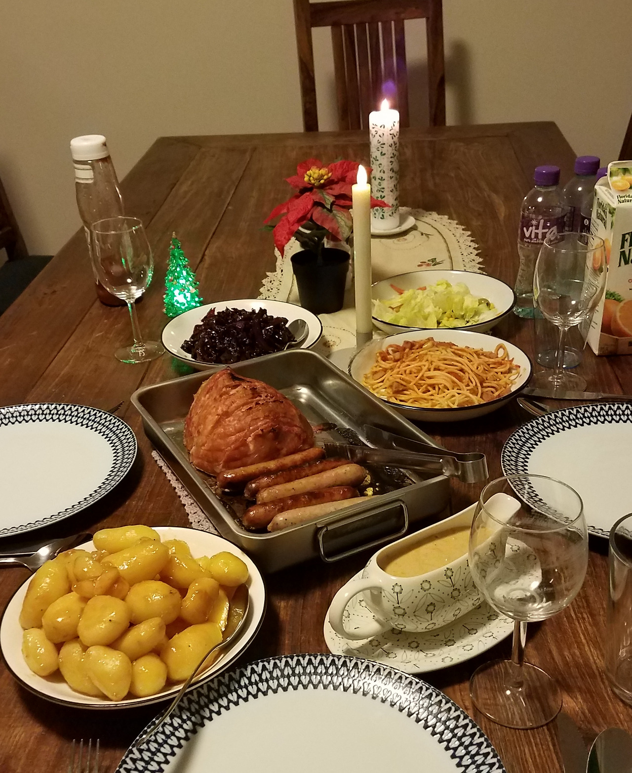 유럽을 떠나 다른 나라, 혹은 한국에서 크리스마스를 보낼 때면 나는 덴마크의 전통 음식을 만들곤 한다. 조금이라도 그 아늑하고 즐겁고 풍성한 분위기를 내보려는 것이다. 물론 같은 재료를 찾을 수 없어 완벽히 재현할 수는 없지만, 향과 색을 맞추려 노력한다. 그러나, 어려운 오리고기 대신 간편한 햄을 오븐에 구워 저녁을 준비한다. 음식의 모습은 비슷하게 흉내 낼 수 있어도, 시어머니의 손맛을 따라가기에는 역부족이라 항상 아쉽다.