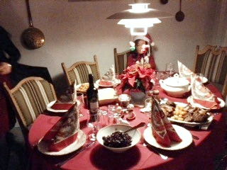 테이블 위에는 크리스마스를 상징하는 초록색 또는 붉은색 테이블보가 깔린다. 나는 짙은 녹색 장식장 안에 고이 간직된 시어머니의 귀한 접시들을 꺼내 정갈하게 세팅한다. 식탁 중앙에는 크리스마스 꽃인 포인세티아가 놓이고, 접시 위에는 산타가 썰매 타는 그림이 그려진 냅킨이 얹힌다.