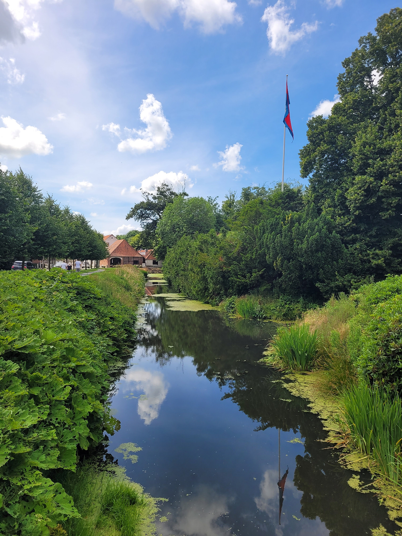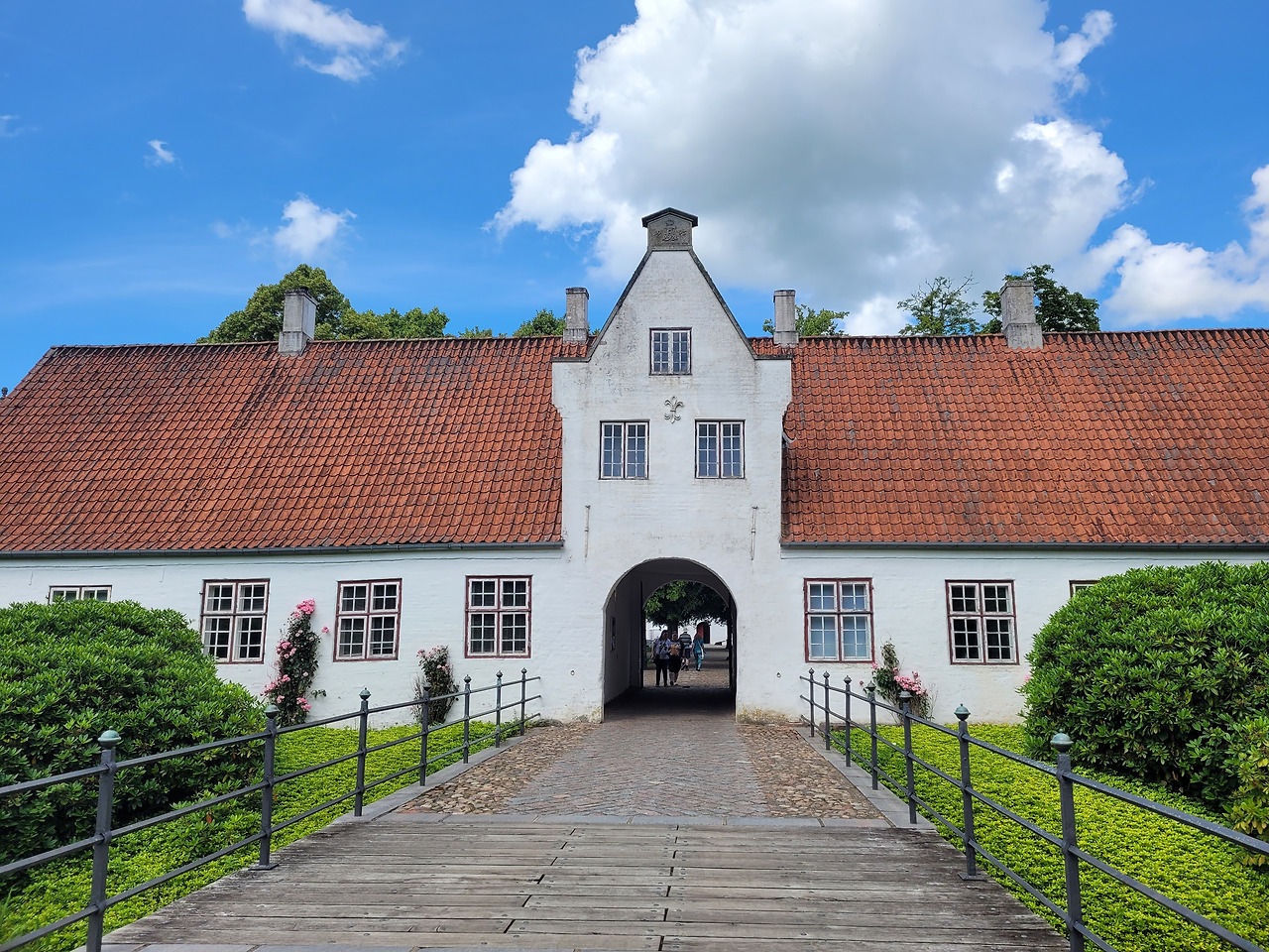 돌길을 저벅저벅 걸어 성의 입구인 다리에 도착했다. 다리 아래로는 성을 방어하기 위한 목적인 해자가 흐른다. 다리를 건너 빨간 지붕의 관리인 숙소를 지나면, 감색 지붕에 디귿자 모양을 한 소박한 성이 보인다. 바로 샤켄보르(Schackenborg) 성이다.