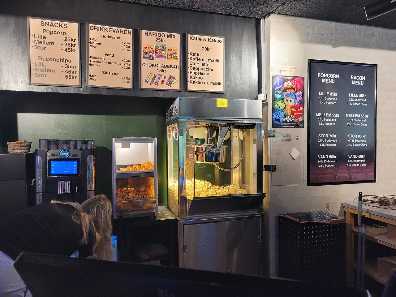 이 영화관은 두 개의 상영관을 운영하고 있다. 1관은 120석, 2관은 75석 규모다. 우리가 들어간 1관은 평일이라 그런지 관객이 많지 않았다. 좌석은 넓고 푹신해 편안했고, 관객이 적은 덕에 오붓하게 영화를 즐길 수 있었다. 문득 제주에 있는 ‘00 작은 영화관’이 떠올랐다. 하지만 한국은 시골이라 해도 인구가 많으니, 영화관도 더 크고 관객을 끌기 위해 다양한 이벤트도 많이 하는 편이다.