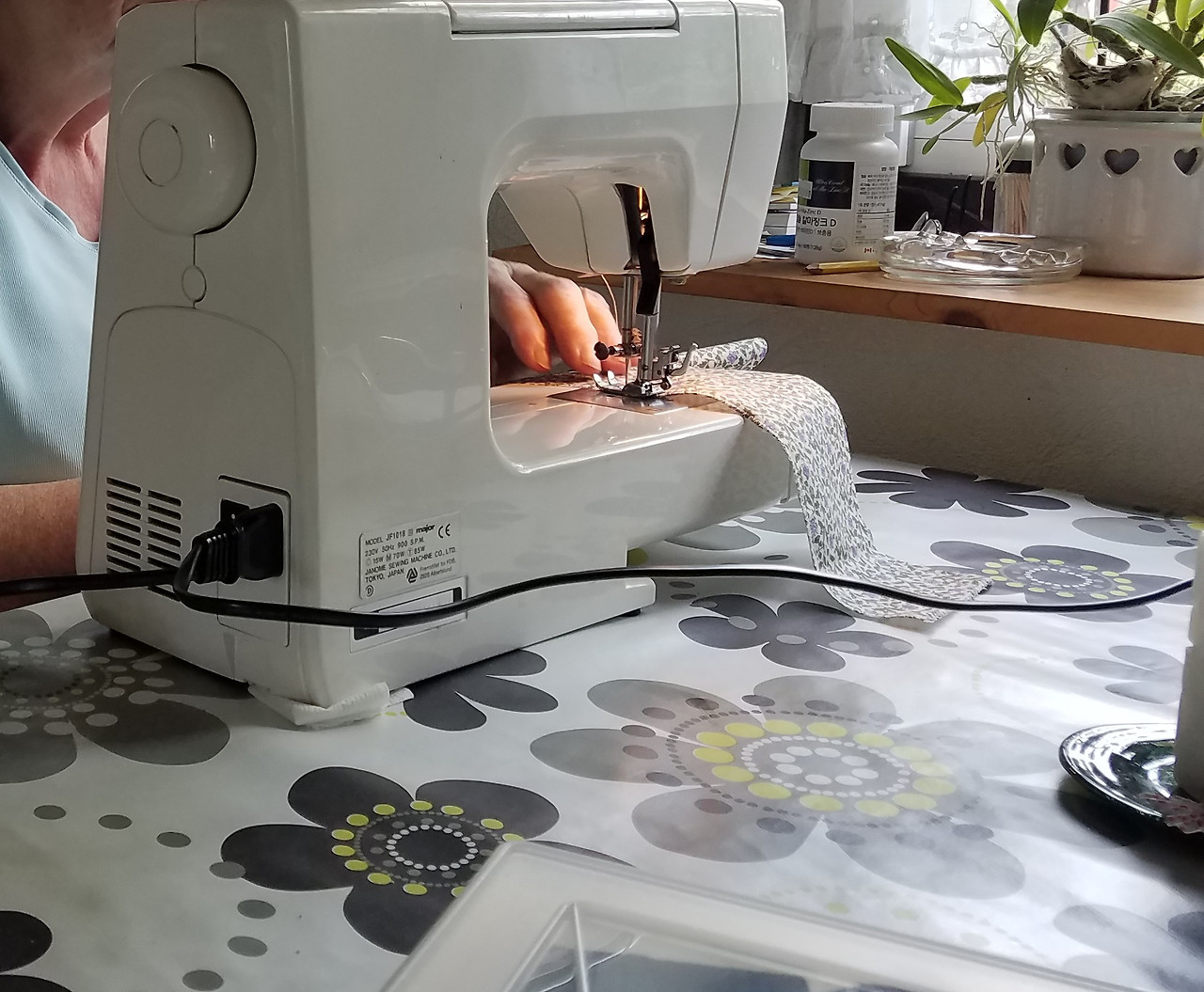 당시에는 홍콩에 살던 시절이라, 직물로 유명한 삼수이포 시장(Sham Shui Po Fabric Market)으로 갔다. 그곳에서 드레스 천을 사고, 시어머니와 시누이에게 줄 옷감도 선물로 골랐다. 딸은 보라색과 초록색이 들어간 잔꽃무늬 원단과 분홍색 리본을 선택했다. 치마와 소매 밑단에 들어갈 레이스는 시어머니가 오래전 직접 떠 둔 것을 사용하기로 했다.