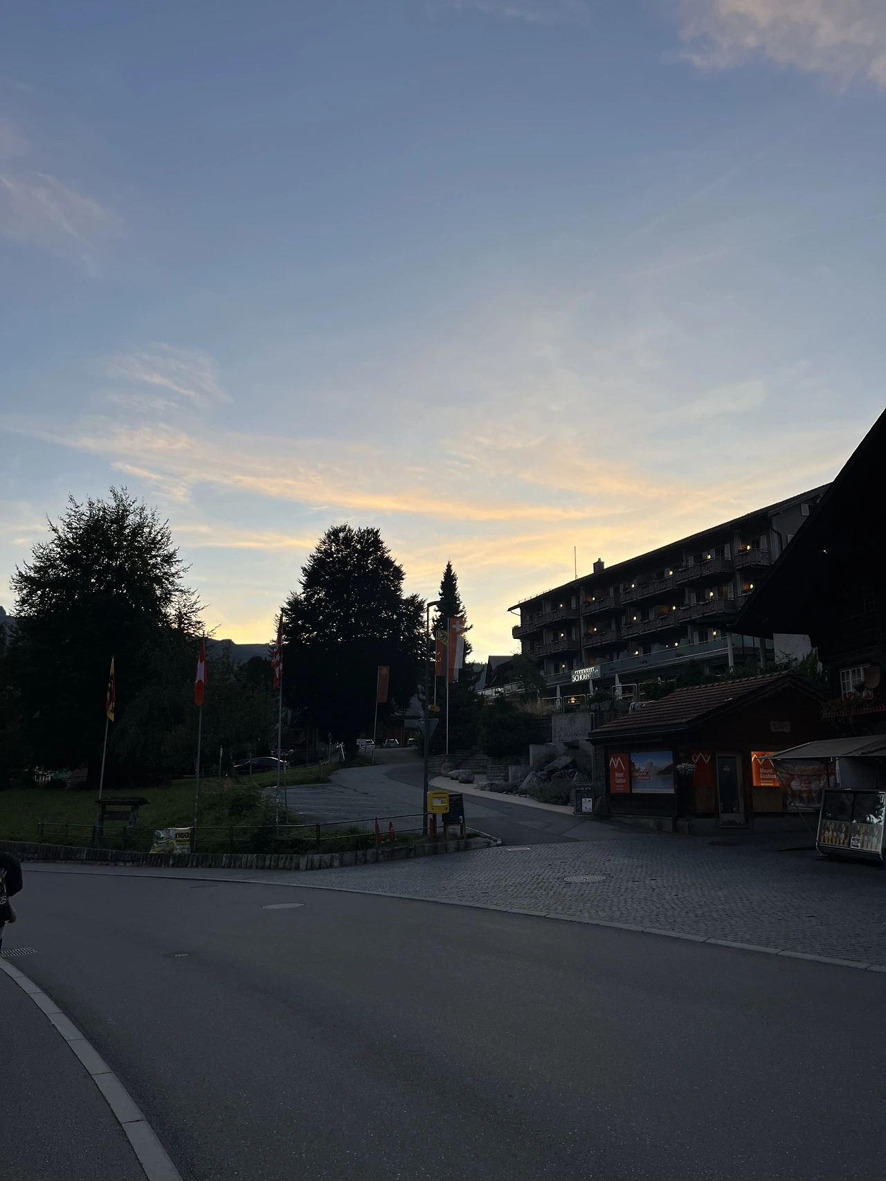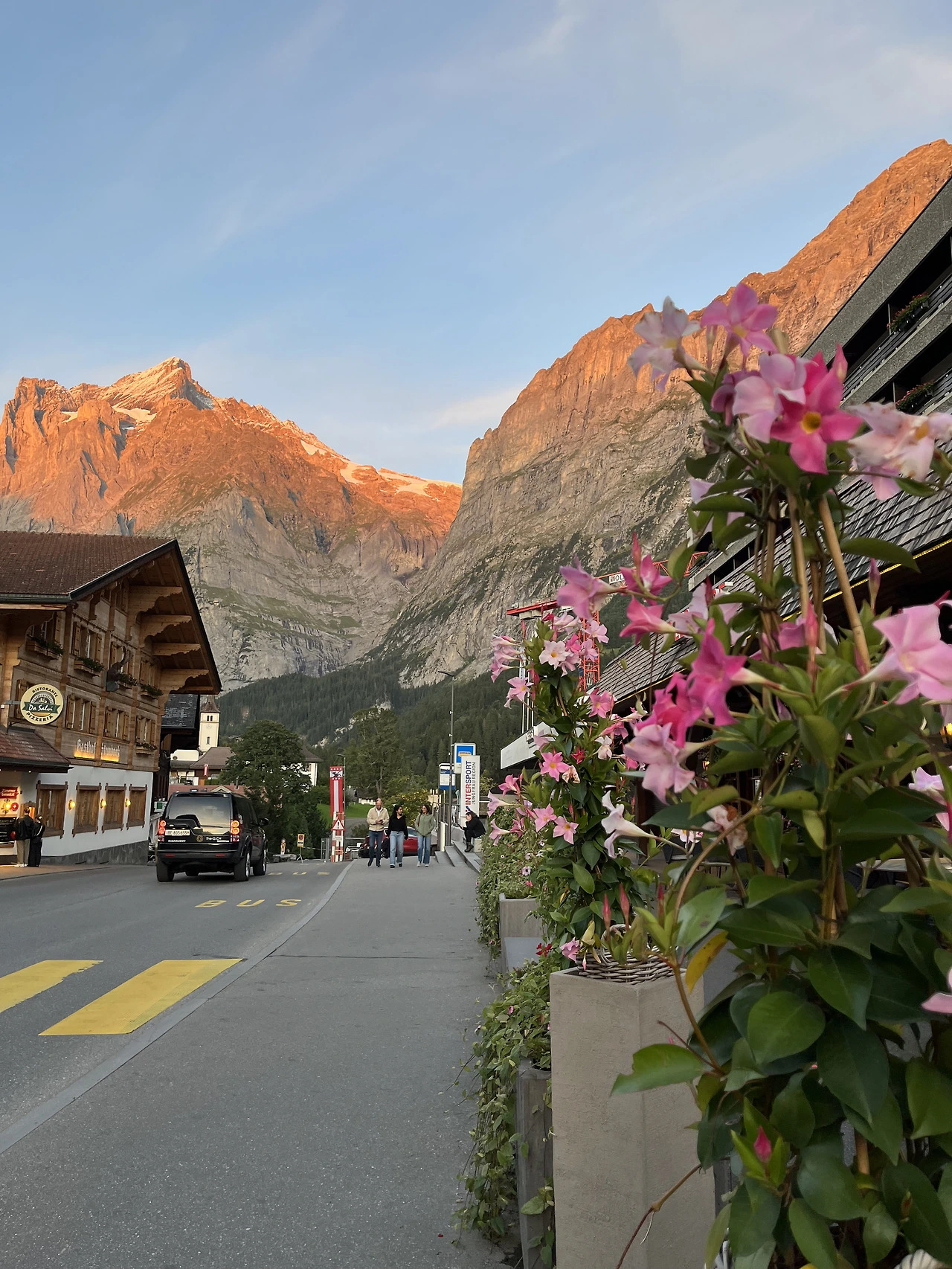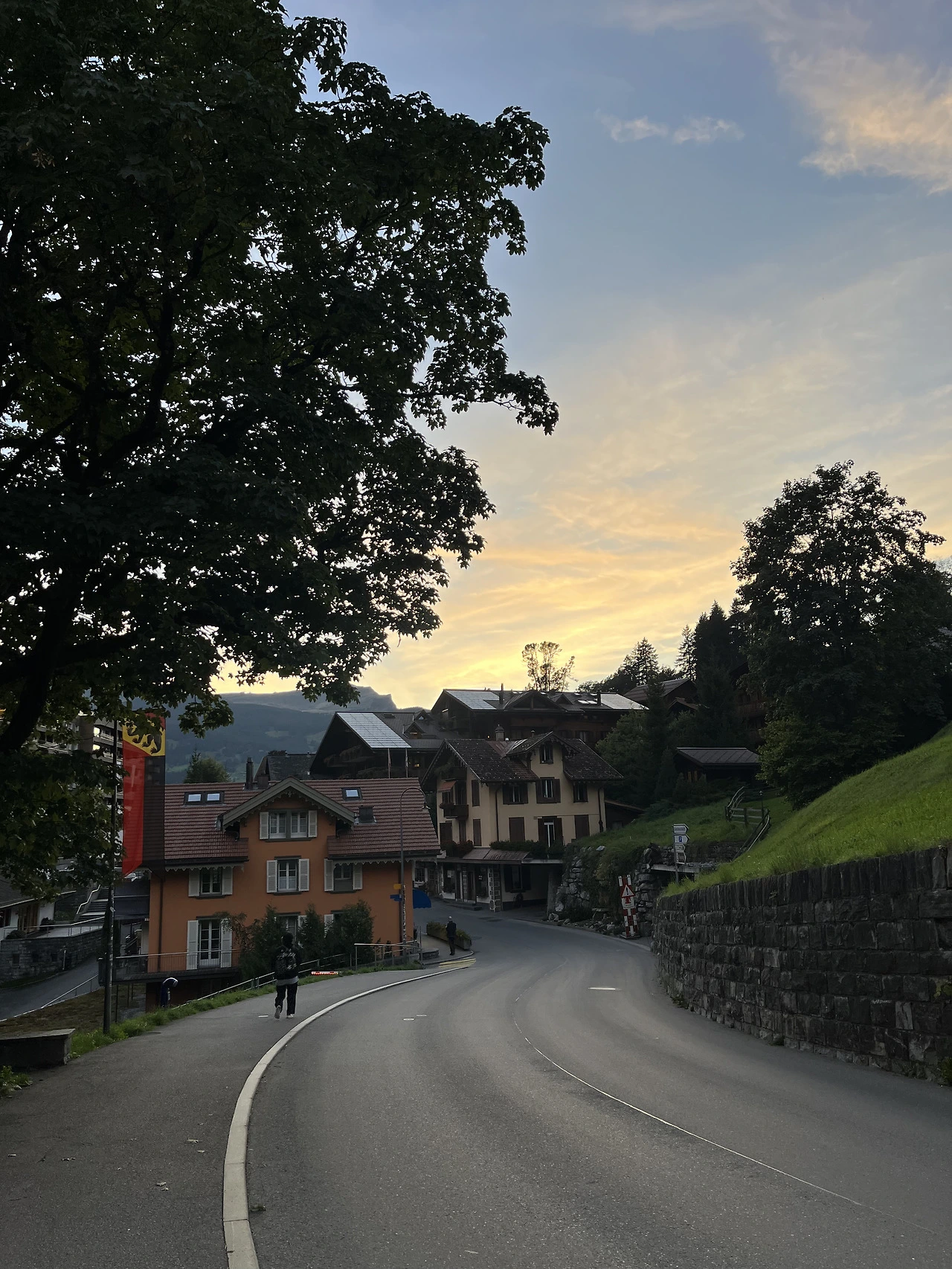 짐을 내려놓고 저녁을 먹으러 다시 나오는 사이 서서히 해가 지고 있었다. 작은 동화 같은 그린델발트마을이 비스듬히 눕는 일몰의 빛과 그림자 속으로 스며드는 모습이 꿈결 같았다.