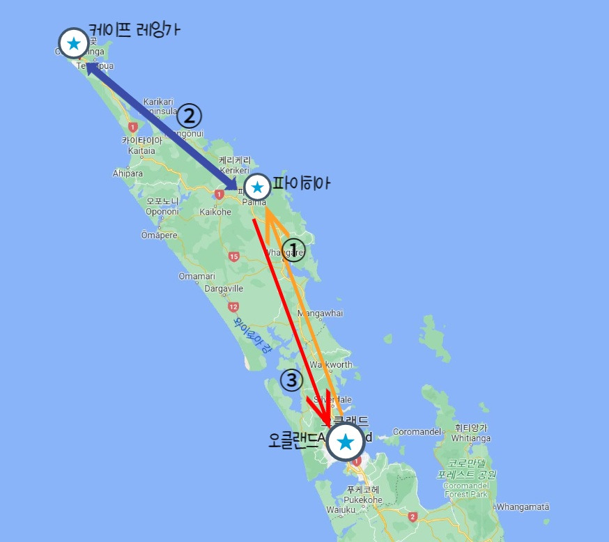 이 여행을 계획했을 때, 하루 만에 '케이프 레잉가'까지 올라가는 건 어차피 불가능하다고 생각했었기에 첫날의 내 목표는 '파이히아'라는 도시까지 가는 거였다. 그곳까지 다시 몇 번의 친절한 키위(뉴질랜드 사람을 부르는 별명)들 덕에 무사히 도착할 수 있었다.