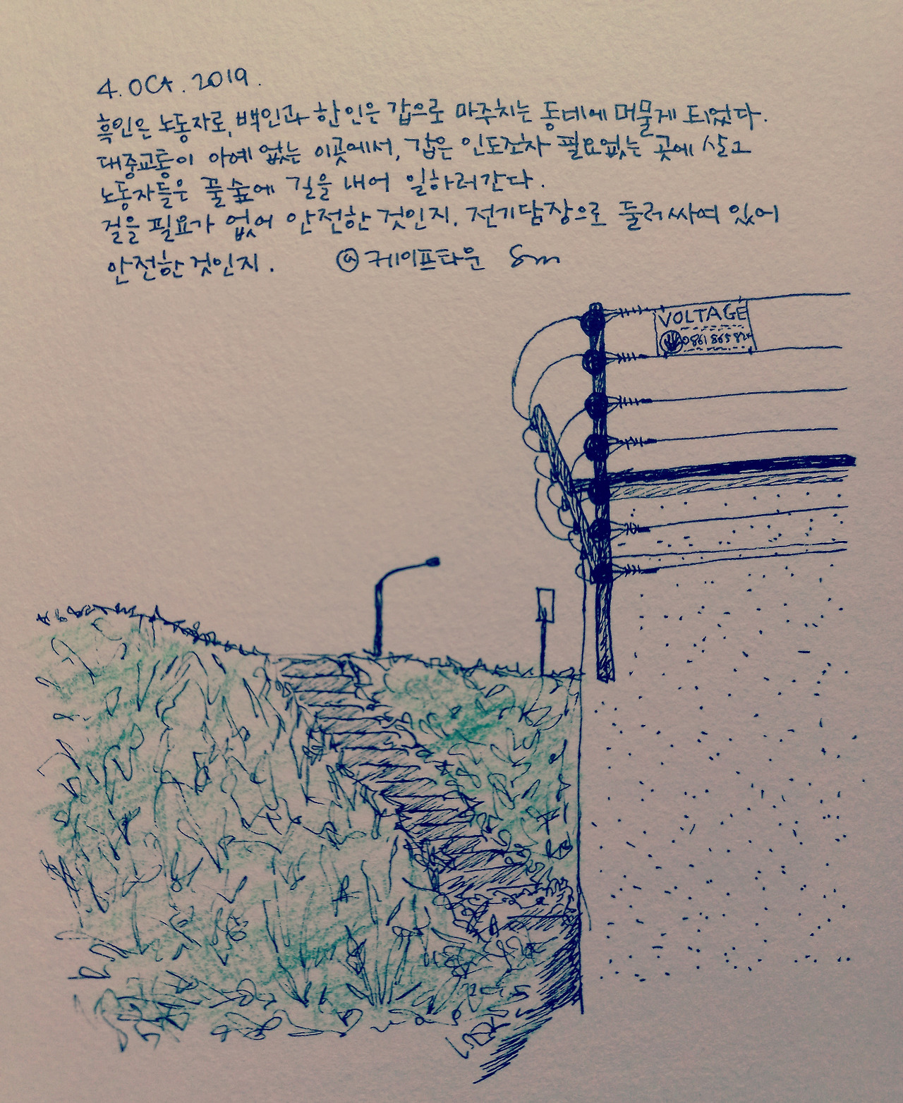 어딘가 분명 고속도로를 통과할 수 있는 터널(사람 다니는 길)이 있을 거라 생각했다. 왜냐하면 버스가 다니지 않는 이 동네로 일을 하러 '올라오는' 흑인들이 있을 테니, 분명 길은 있다고 믿었다. 내가 묵는 민박집에도 앳되 보이는 젊은 흑인 아가씨 하나가 집안일을 돕고 있었다.