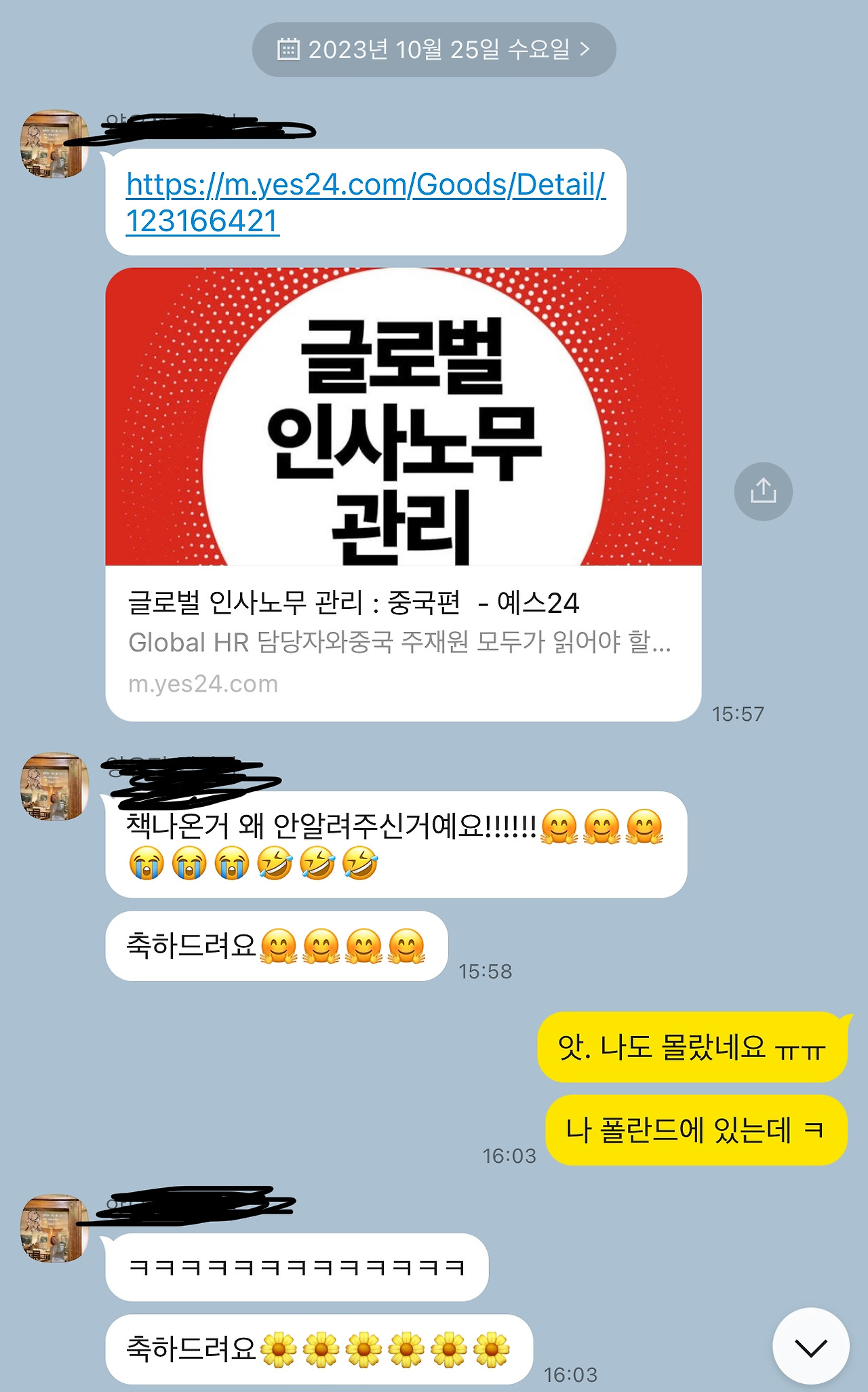 폴란드는 한국과 -7시간의 시차가 있다. 2023년 10월 25일 아침 8시부터 늦은 조식을 먹고 오니, 카톡이 울리기 시작한다. 귀국을 위해 짐정리를 하다가 출간된 사실을 알게 되었다.