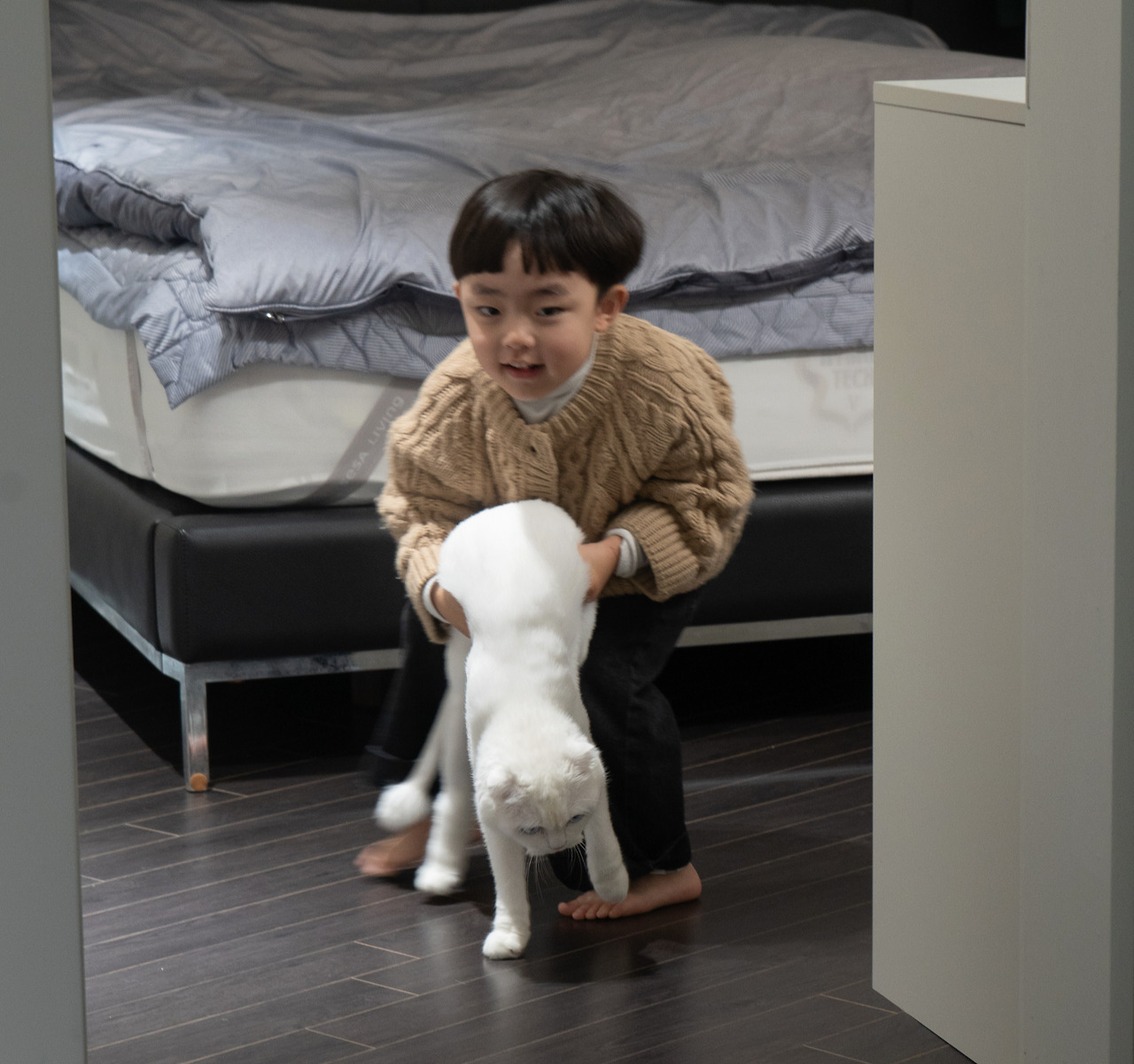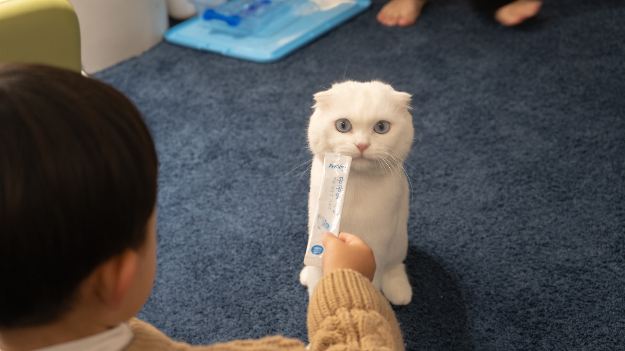 형이 말을 잘 듣지 않고, 계속 피하자 츄르를 꺼내 들었습니다.