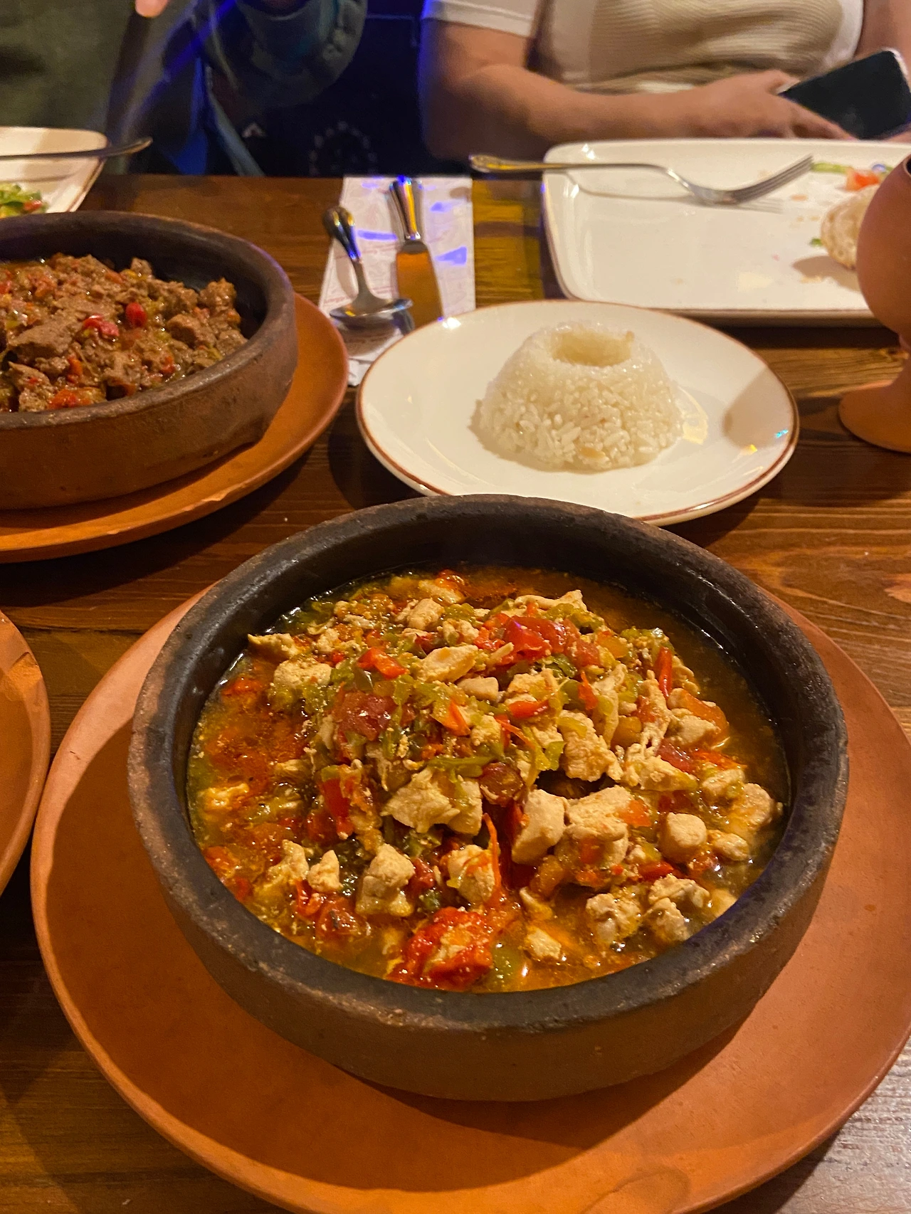 소스는 살짝 달콤하면서 토마토와 파프리카의 새콤함에 고기의 기름진 맛이 어우러져 깔끔하면서도 깊고, 매콤한 맛이 취향을 저격했다. 닭고기와 소고기, 두 가지 케밥을 시켰는데 공기가 통하지 않게 항아리 속에서 조리한 거라 육즙도 완벽하게 보존되어 있었다. 향신료를 조금씩 추가해 한입한입 맛보는 재미도 빼놓지 않았다. 무엇보다 아빠가 가장 마음에 들어 한 건 밥이 나왔다는 사실. 밥심으로 사는 한국인에게 아주 정이 가는 튀르키예의 밥 문화에 아빠는 더할 나위 없이 흐뭇해했다.