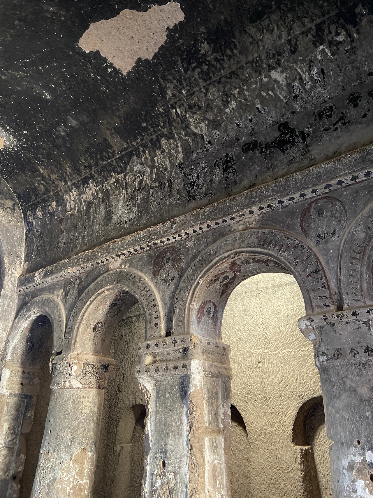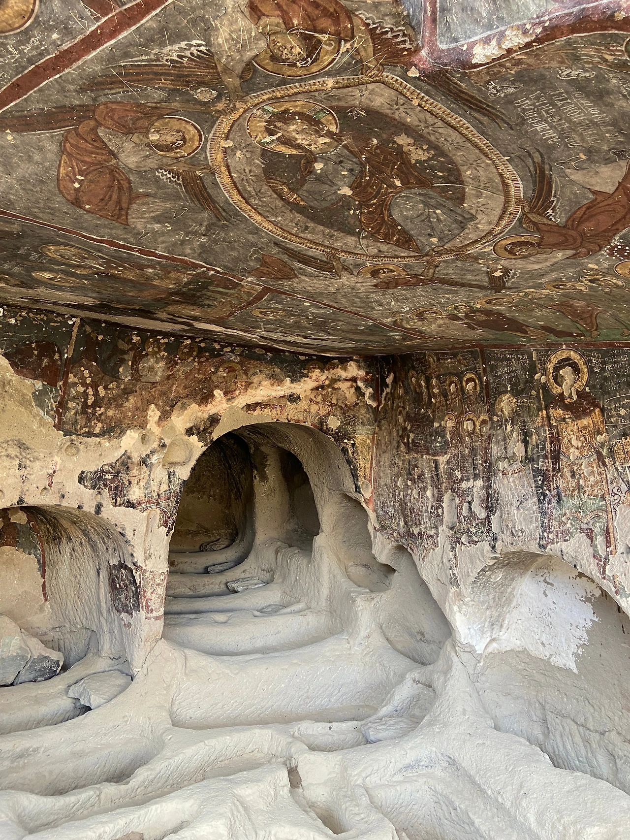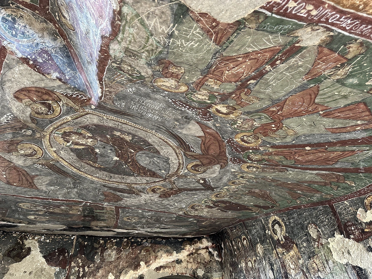 그 옆과 위의 벽면은 벽화들로 가득했는데 그 위에 낙서는 물론이고 파인 흔적들이 셀 수 없이 많았다. 자세히 들여다보니 얼굴 전체가 파인 그림들도 많았고 눈 부위만 긁힌 자국도 있었다. 이에 대한 가이드의 설명은 이랬다. 1920년대에 터키를 떠나야 했던 그리스 교인들이 예수와 마리아를 이곳에 두고 그냥 떠날 수 없어서 그림의 눈을 파서 가져갔다고 한다.