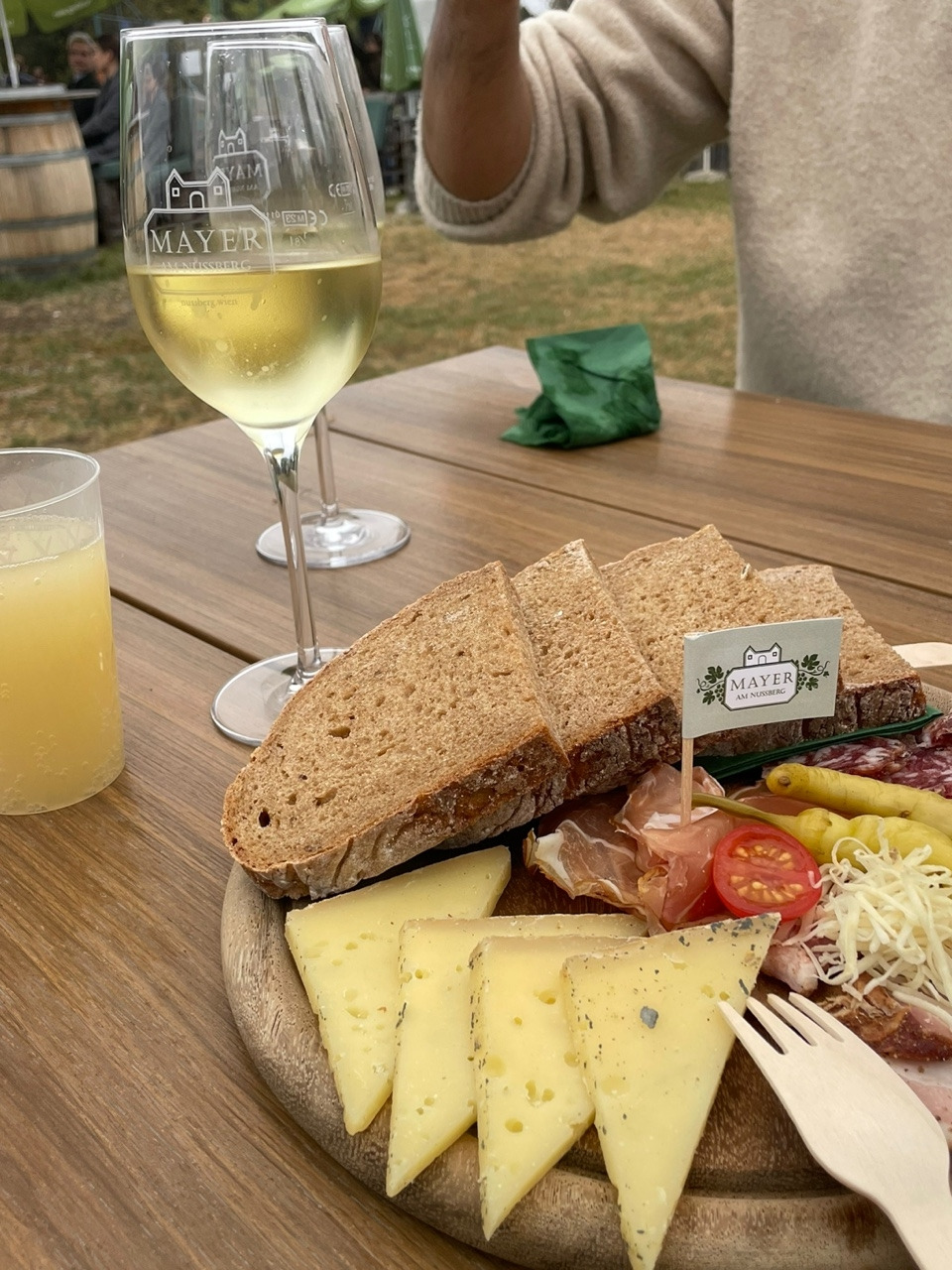 첫날 오후엔 올해(heuriger)의 와인(Wein)의 줄임말인 호이리게에 갔다. 호이리게는 오스트리아 와이너리에서 운영하는 술집이다. 원래는 1년 중 포도 수확철(9-11월)에만 운영하며 그 해의 포도주를 팔았고 피크닉 음식을 싸들고 가서 와인을 즐길 수 있는 곳이었다고 한다. 지금은 콜드 디쉬 위주의 음식을 와인과 함께 판매하는 곳이 대부분이고 수확철보다 길게 운영하는 곳도 많다.