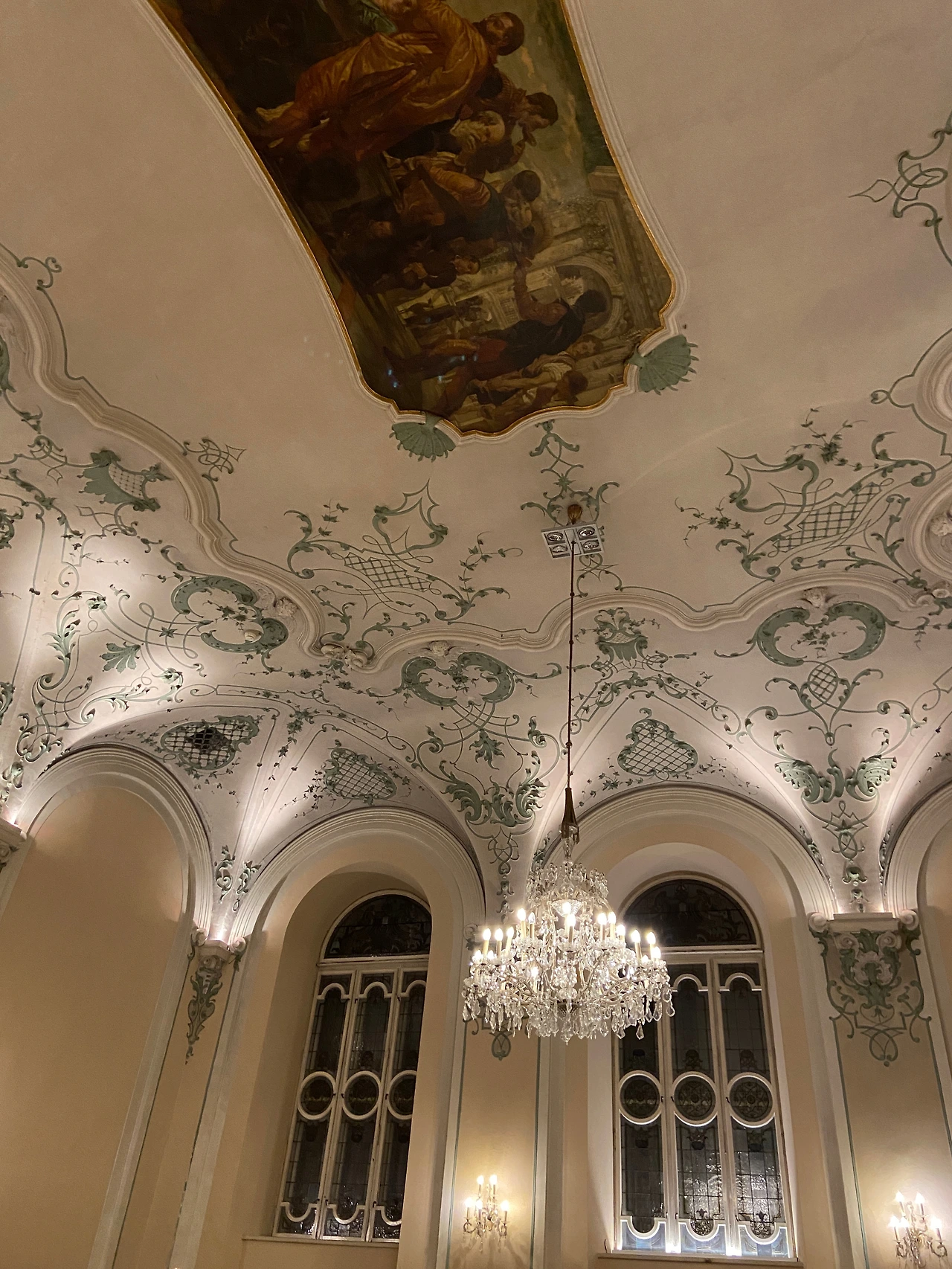 연세 지긋한 매니저가 우리를 보더니 감탄하며 환한 미소로 반겨주었다. 화사하게 차려입고 온 우리에게 눈빛으로 감사와 칭찬을 하는 듯했다. ‘그래, 전혀 과한 게 아니었어’하며 안도하고 뿌듯했다. 콘서트 홀을 들어가자 높은 층고, 아치형 창문과 바로크 스타일의 천장 프레스코화에 압도당했다. 1903년에 지어진 이 홀은 바로크 홀이라는 이름에 맞게 화려한 인테리어를 자랑하는 곳이다. 천장 정중앙의 그림까지 홀 자체가 미술관에 있을 법한 역사와 예술의 합작 같았다.