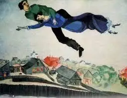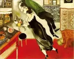 제삼자가 읽으면 닭살 돋는 내용입니다. 한마디로 첫눈에 반했다는 말일테지요. 샤갈이 파리에서 유학할 당시 그녀가 보고 싶어 상사병이 날 정도였다 합니다. 벨라 부모님의 심한 반대에 부딪힙니다. 샤갈이 유명세를 타고 몸값이 올라갔어도 한참 동안 힘들었을 정도로 오랜 설득의 시간이 필요했다고 하네요. 잘 기른 엘리트 딸아이를 가난뱅이 유대인 화가에게 선뜻 내 줄 부모는 없을 테니까요.