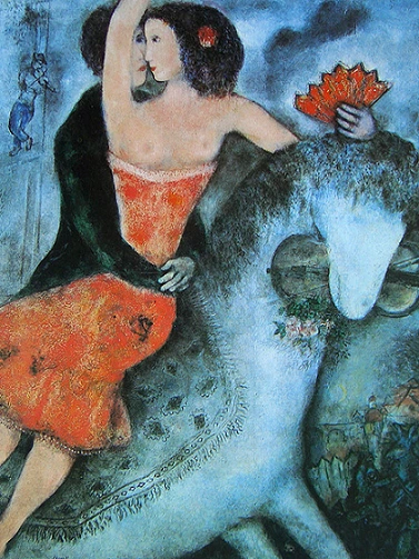 샤갈은 서커스를 좋아했고, 계속해서 서커스를 소재로 한 작품을 그렸다. 샤갈은 민중적인 내용을 도입함으로써 미술의 방식이 더 풍부해질 수 있다고 생각했다. 그가 민중적인 내용을 발견한 곳이 바로 서커스였다. 그는 후에 어릿광대들과 곡예사들에 대해 감탄하면서 서커스의 곡예사들과 위대한 예술가들의 유사성을 강조하기도 했다. 20세기의 많은 예술가들처럼 샤갈은 익살스러운 인물들이나 어릿광대들처럼 무엇보다 사람들의 마음을 끌고 매혹시키는 일을 샤갈 자신이 직업으로 삼고 있다고 생각했었다. 당시 예술가에 대한 샤갈의 이런 생각은 화가, 곡예사, 악사가 대중의 마음을 끌고 즐겁게 하며 감동을 주기 위해 일한다는 소박한 믿음에 기반을 두고 있다. 샤갈에게 있어 예술은 행복을 부르는 가장 간단한 방법이었던 셈이다.