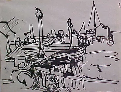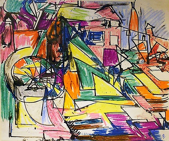 한스 호프만의 < St. Tropez>(1928)는 활기찬 도시 풍경을 표현주의 양식으로 묘사한 작품입니다. 이 작품은 대담하고 역동적인 선을 사용하여 움직임을 전달합니다. 표현주의 스타일로 그려진 번화한 도시 풍경을 보여줍니다. 작품의 선들은 대담하고 역동적이며, 움직이는 느낌을 전달합니다.