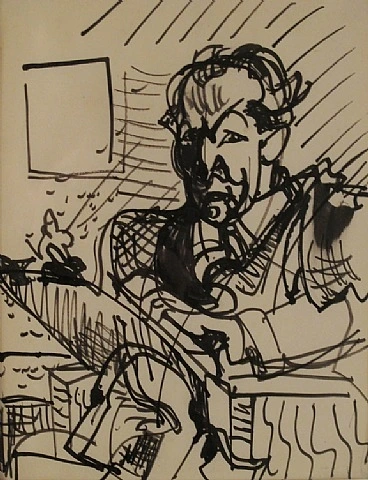 이 작품은 빛과 색에 대한 흥미로운 연구로, 점묘법의 본질적인 특징을 잘 보여줍니다. 호프만이 이러한 방식으로 자신을 묘사하기로 결정한 것은 그가 당시의 아방가르드 미학 원칙에 의식적으로 참여했음을 드러냅니다. 모더니스트적 시각으로 전통적인 초상화에 도전했음을 말하죠. 일부 비평가들은 호프만의 초기 작품에서 인물 머리의 위치가 캔버스 중앙에 배치되는 '평범한 구성 습관'을 보인다고 지적하기도 합니다. 1930년대 이후 그의 초상화에 조금씩 변화가 보입니다.