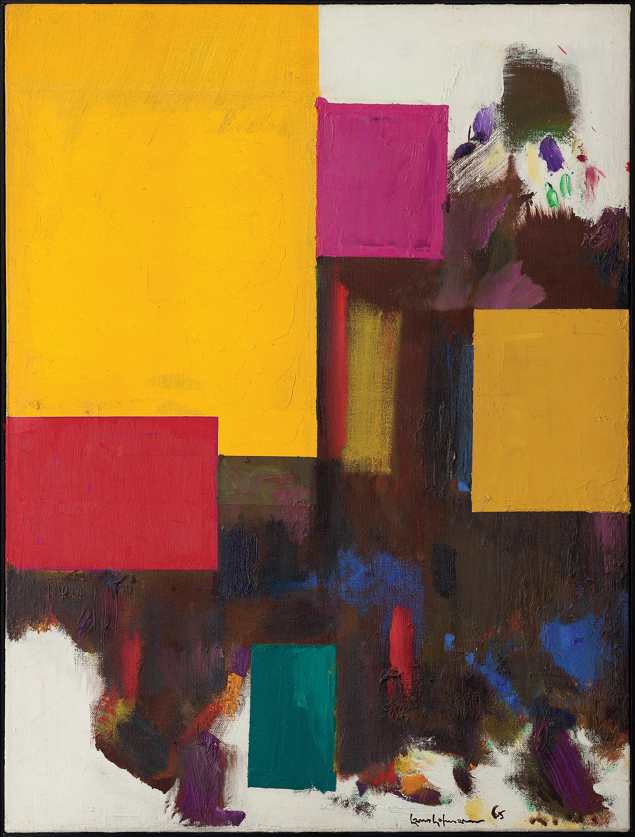 한스 호프만(Hans Hofmann,1880-1966)의 < Shapes in Black>(1944)은 추상 표현주의 양식으로 그려진 유화 작품입니다. 1944년은 호프만에게 있어 여러 단체전과 두 차례의 개인전에 작품이 소개되는 중요한 해였습니다. 호프만의 1940년대 작품에서 보이는 초기 양식적 실험을 보여주며, 다양한 형태와 색상이 깊이감을 만들어내는 '밀고 당기기 pusth and pull)'이론을 엿볼 수 있습니다.