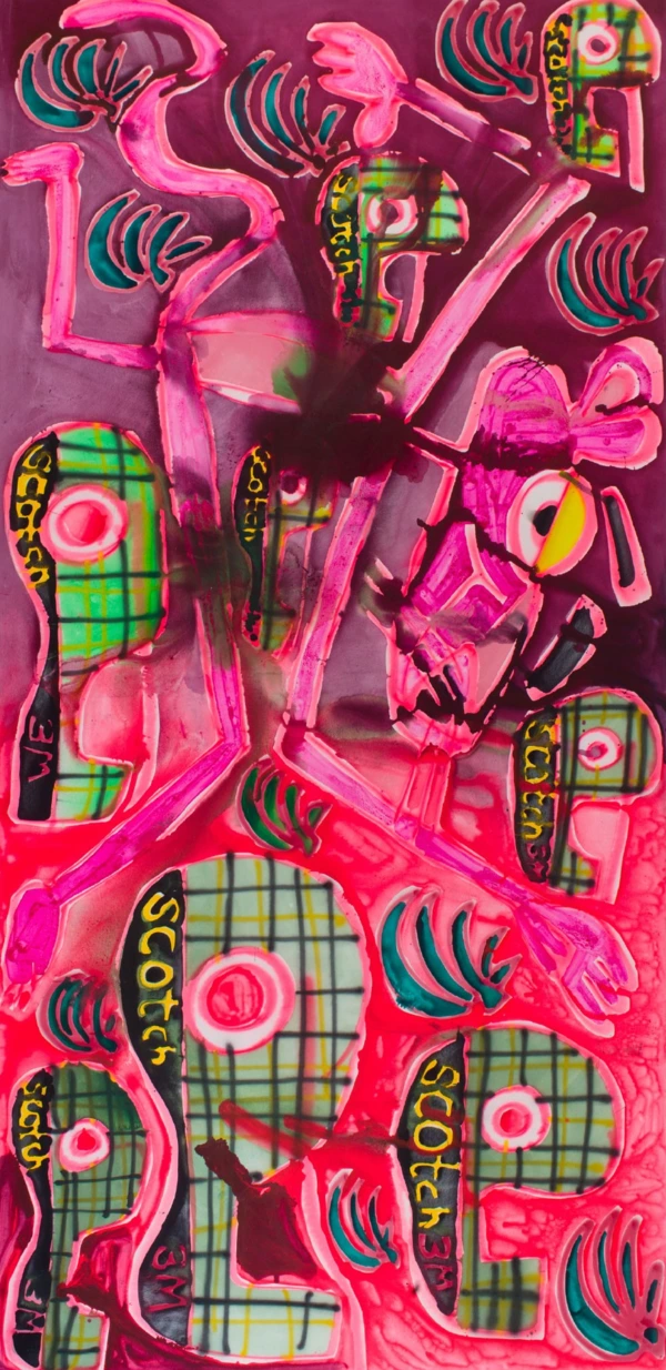 pink panther + Scotch Tape+ Green Plantains, 2019, Acrylic& Spray paint on canvas