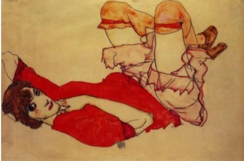 빨간색 다소 도발적 자세를 취하고 있는 작품 속 여인은 17살의 Walburga Neuzil(Wally)입니다. 그녀는 이전에 구스타프 클림트의 모델이었습니다. 그의 연인 중 한 명이었다는 것 이외에는 그녀에 대해 알려진 것이 거의 없습니다. 나이가 말해주듯 미성년자입니다. 에곤 실레는 그녀를 만나 비엔나에서 같이 살게 됩니다. 그녀는 어린 나이지만 에곤 실레가 원하는 콘셉트를 정확하게 이해하고 충족시켜 준 모델이기도 했습니다. 둘 다 아직 미숙한 연인들이라 함께 지내는 시간은 짧았습니다. 서로를 대하는 표현 방법 또한 에곤 실레의 이기적인 모습이 더 보이고요. 개인적으로 안타까운 마주침이란 생각을 해봅니다.