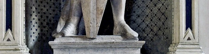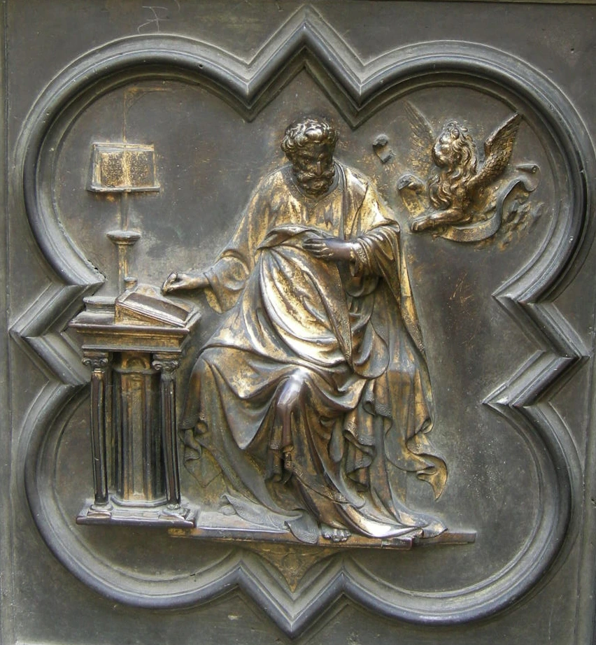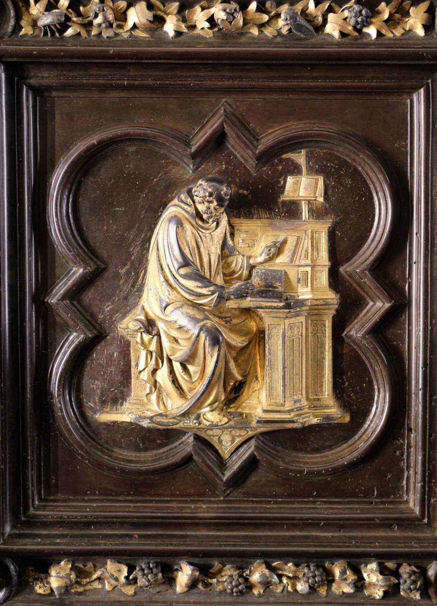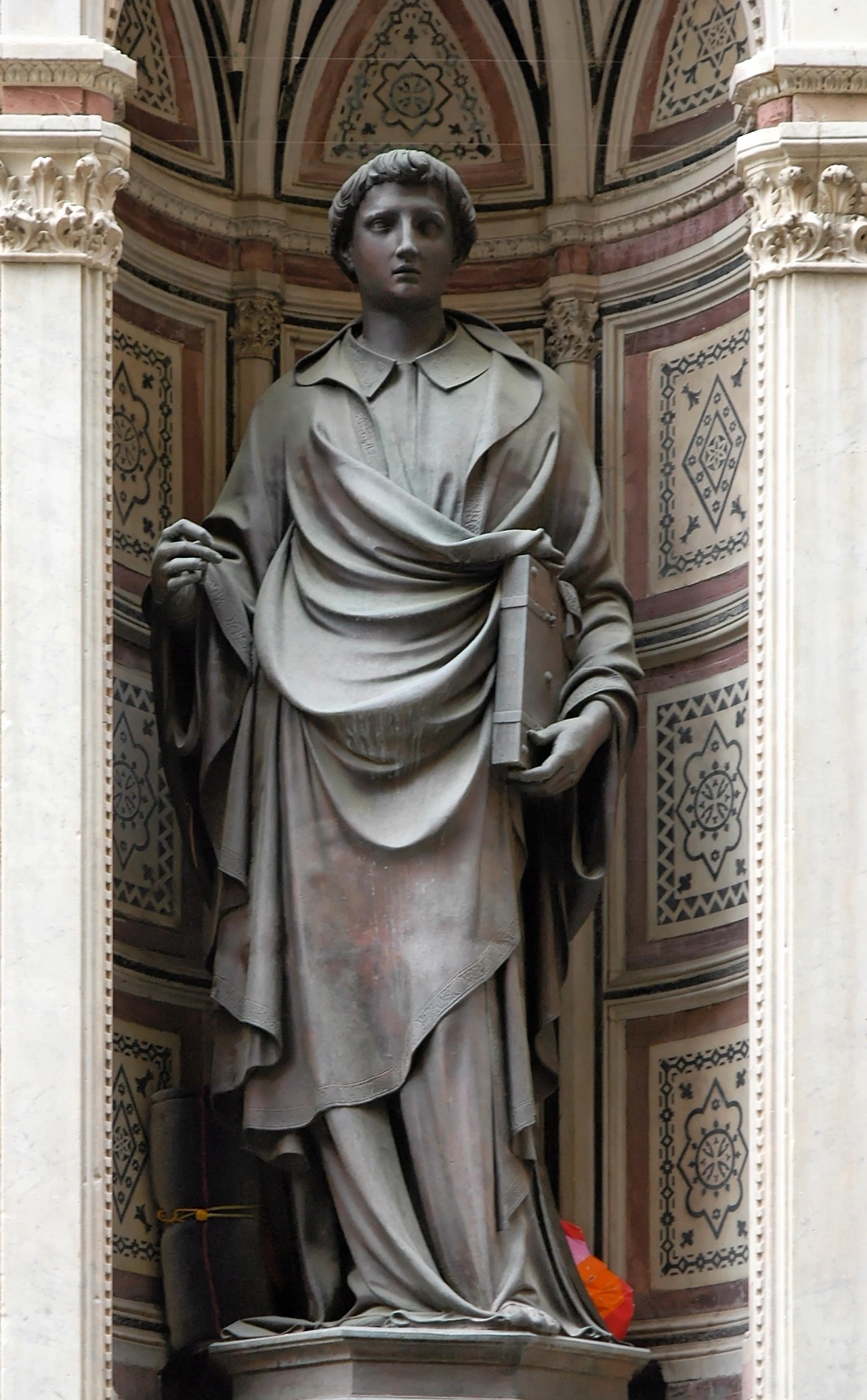 성 마태오 ( Saint Matthew) 조각상입니다. 이 청동상은 아르테 델 캄비오(은행가 길드)의 의뢰로 제작되었습니다. 기베르티( Lorenzo Ghiberti, 1378-1455)의 예술 경력에서 중요한 성과로 인정받는 작품입니다. 고전주의 정신, 기념비적인 감각, 정확한 해부학적 구조, 그리고 콘트라포스토(contrapposto) 자세를 보여줍니다. 1420년 이전에 조각에서 인본주의적 원칙을 가장 명확하게 보여주는 증거로 꼽히는 작품입니다. 성 마태오상은 복원 과정에서 눈 부분에 은박 상감이 발견되기도 했습니다.