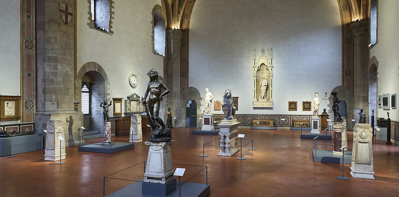 바르젤로 건물은 1255년에 피렌체 최초의 공공건물로 세워졌습니다. 초기에는 피렌체 시의 최고 치안관인 포데스타의 자리였으며, 이후 1500년대 중반부터는 도시 경찰청장인 "바르젤로"의 본거지이자 수세기 동안 감옥으로 사용되었습니다. 이 건물은 1858년에서 1865년 사이에 원래 형태로 복원된 후 국립 박물관으로 개관했습니다. 도나텔로 , 미켈란젤로 등 피렌체 시대의 다른 거장들의 작품들도 다수 소장하고 있습니다. 현재 박물관은 피렌체에 있는 네 개의 작은 박물관인 메디치 예배당, 오르산미켈레, 팔라초 다반자티, 카사 마르텔리를 포함하는 바르젤로 박물관 그룹을 총괄하고 있습니다.
