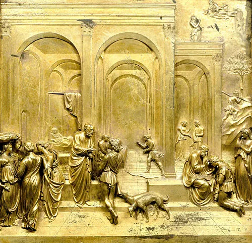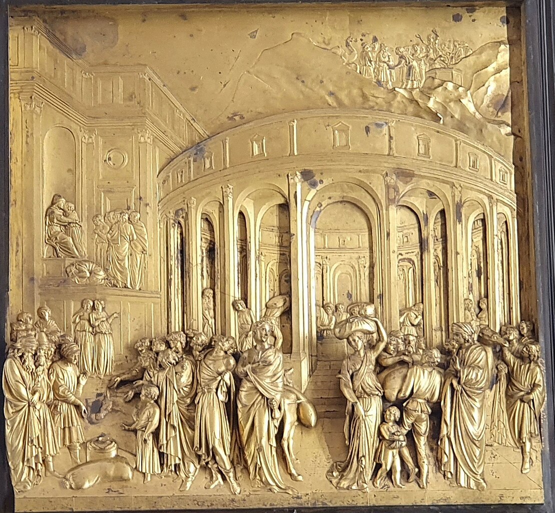 요셉의 이야기입니다. 이 패널은 요셉이 노예로 팔리는 이야기를 통해 기베르티의 원근법이 원숙해짐을 알 수 있습니다.
