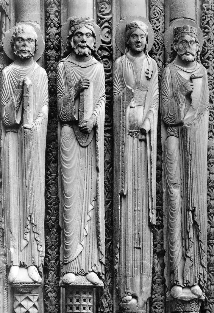 Jamb figures by Medieval sculptor , Chartres Cathedral, French, 1145/wikipedia