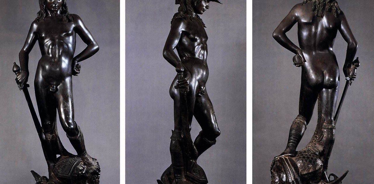 도나텔로( Donatello, 1386-1466)의 <다윗>은 르네상스 시대의 상징적인 청동 조각품입니다. 고전적인 나체 조각의 부활과 함께 종교적, 정치적, 그리고 심지어 동성애적 의미까지 담고 있습니다.