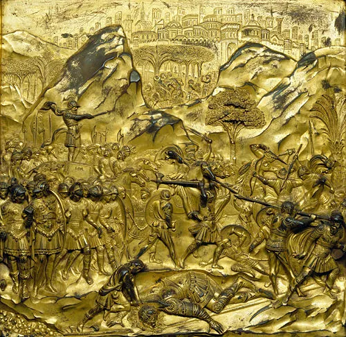 기베르티(1378-1455)는 그의 주요 작품인 세례당 문이 건축물의 일부로서 기능을 가졌으며 건축적 배경과 조화를 이루는 방식으로 인물들을 배치했습니다. 도나텔로(1386-1466)는 고대 이후 처음으로 독립적인 누드 조각상을 제작하는 등 건축물로부터 독립된 조각의 가능성을 실험했습니다.
