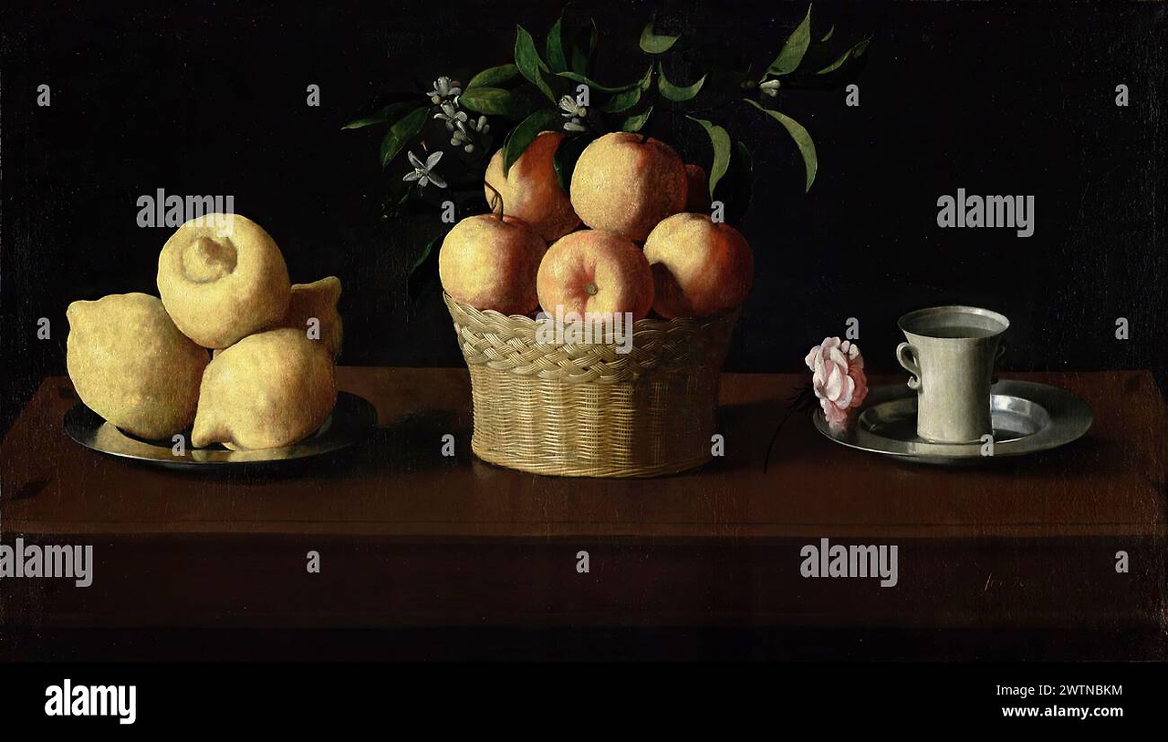 Still life with Citrons, Oranges and a Rose by Francisco de Zurbaran/ Museo del Prado
