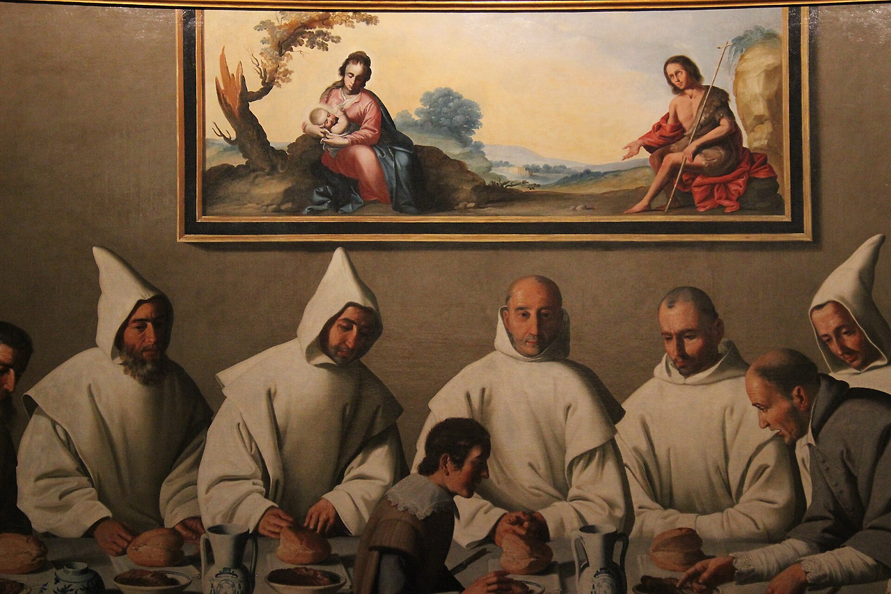 St Hugh in the Carthusian Refectory,1655, Museum of fine Arts of Seville/wikimedia commons