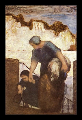 <세탁부>입니다. 한 보퉁이 빨래를 옆에 끼고 하루 종일 지쳤을 몸뚱이는 그래도 아이 손만은 놓지 않고 꼭 쥔 채 계단을 오릅니다. 산동네 몽마르트르의 계단을 오르는 것처럼 보이네요. 당시 돈 없는 예술가들, 서민층들이 많이 살았던 동네거든요. 낑낑거리며 계단을 오르는 아이가 저 여인에게 유일한 희망이겠구나 싶고요.