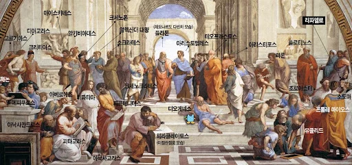 그림1<.아테나 학당>1509-1511/나무위키그림2.라파엘로와 아테네 학당 인물들/jjong.info