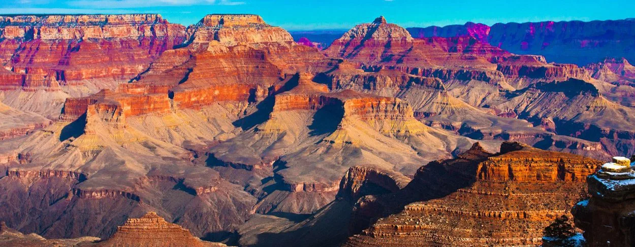 사진 속 그랜드 캐니언(Grane Canyon)은 미국 남서부 지역에 있는 애리조나주 북부 지역에 있습니다. 이곳은 콜로라도 고원(Colorade Plateau)으로 불리는 높은 고원지대인데 이곳을 가로질러 흐르는 콜로라도강에 의해서 만들어진 거대한 협곡이 그랜드 캐니언입니다.