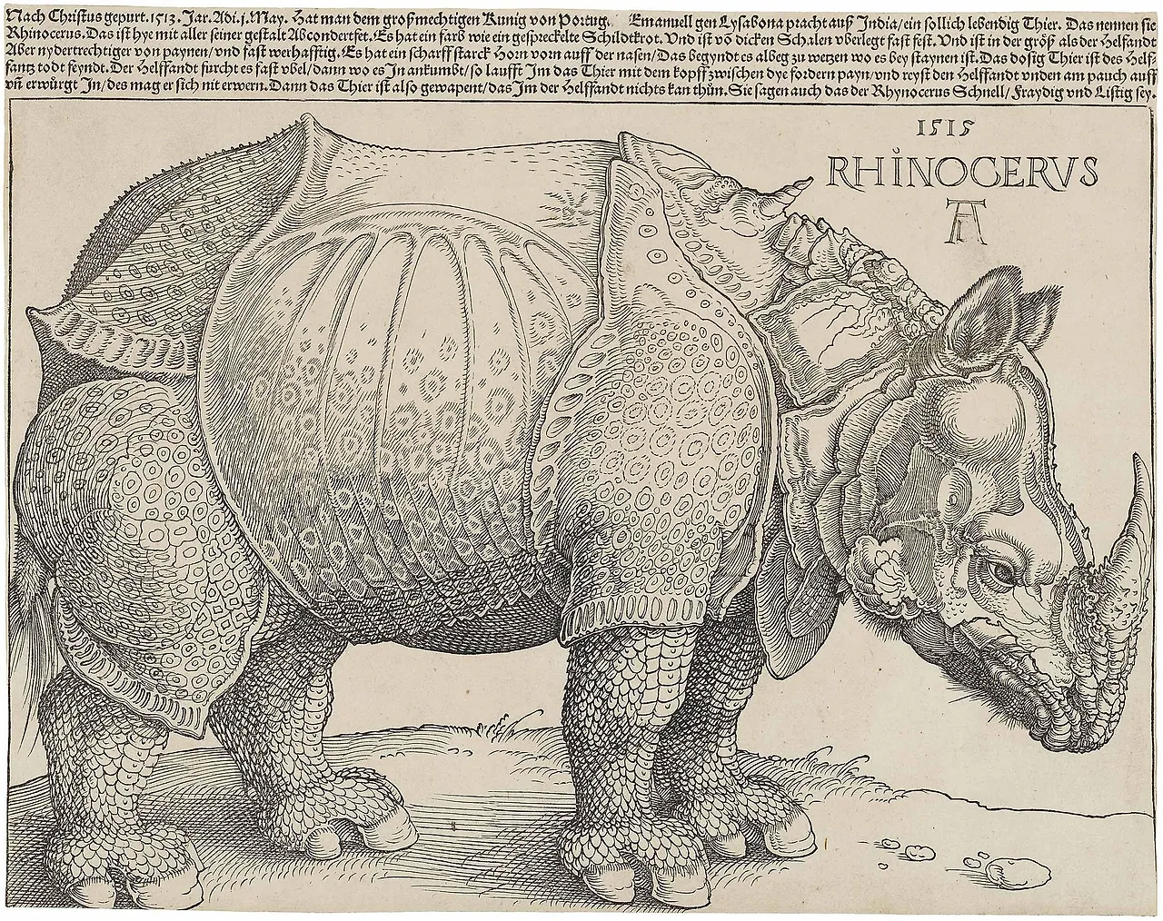 2. 알브레히트 뒤러의 "코뿔소 (Rhinoceros)'작품은 목판화 중 하나입니다. 1515년에 제작된 이 작품은 뒤러가 직접 코뿔소를 본 적이 없음에도 불구하고 만들어 낸 놀라운 예술 작품입니다.