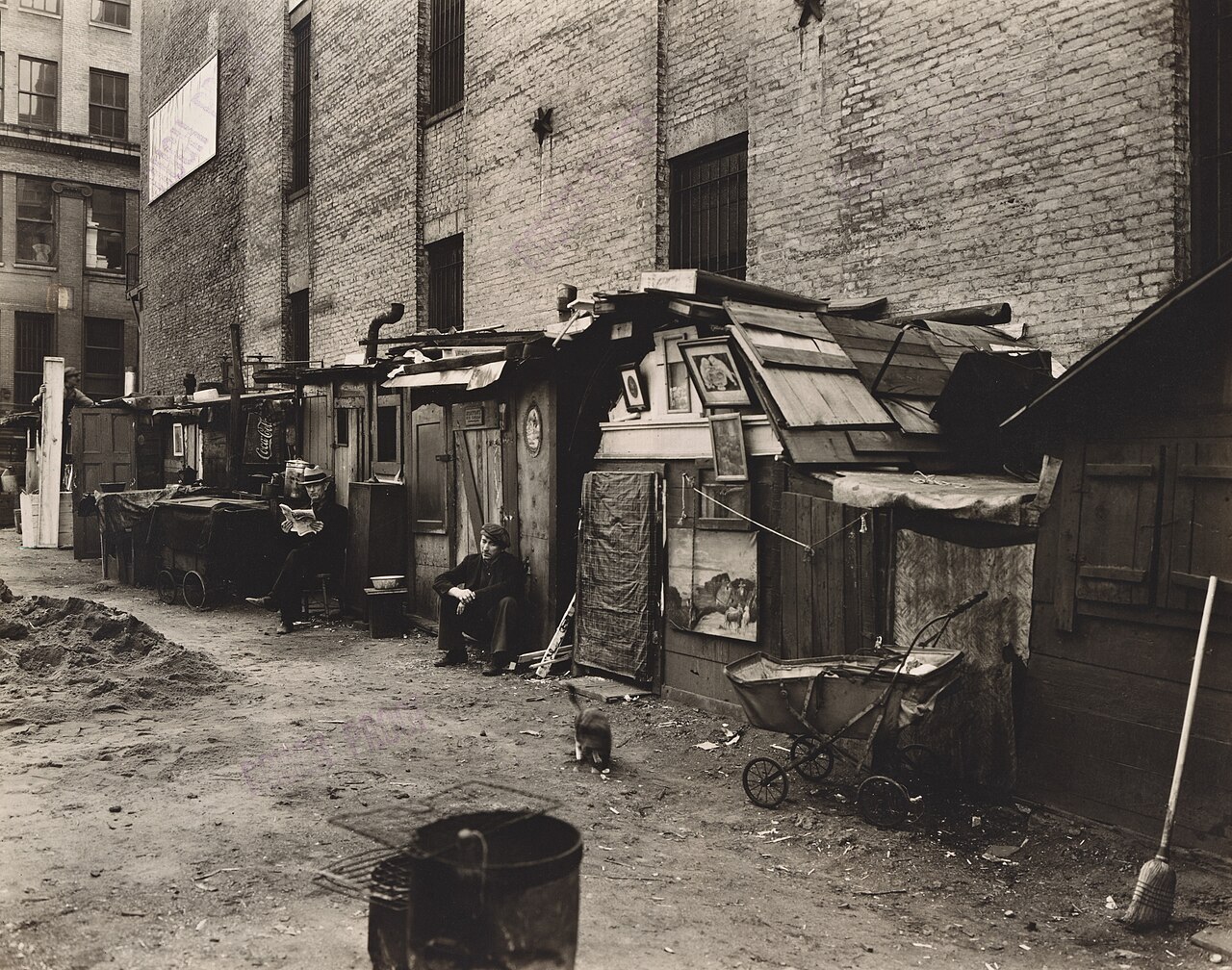 그림은 후버가 태어난 소박한 하얀색 목조 오두막을 묘사한 작품입니다. 그의 겸손한 출신 배경을 강조하고 있습니다. 이는 대공황 시기에 그의 대통령직과 관련된 "후버빌"(Hoovervilles, 빈민촌)과 대조를 이루고 있고요. 후버빌 (Hoovervilles)은 1930년대 미국 대공황 시기에 전국적으로 세워진 임시 막사들을 의미합니다. 이 막사들은 대공황으로 인해 집을 잃은 수많은 노숙자들이 거주하기 위해 만들어졌습니다. 이러한 임시 거주지는 허버트 후버(Herbert Hoover) 대통령의 이름을 따서 명명되었지요. 이로 인해 후버 대통령의 경제 정책이 대공황을 해결하지 못한 것에 대한 비판의 상징이 되었고요.