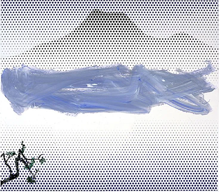 이 작품은 그가 자연 풍경을 현대적으로 재구성한 예로 볼 수 있습니다. 특유의 선명한 색상과 구조적 요소가 돋보이고요. 회색과 파란색의 안갯속에 흐릿하게 나타나는 요소들은 마치 만화의 패턴처럼 구성되어 있으며 , 벤데이 점 기법이 두드러져 있습니다. 이 기법은 관람객에게 인쇄한 듯한 질감을 주어, 작품이 차지하는 공간감과 심미성을 높여줍니다.