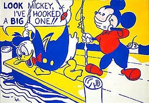 리히텐슈타인의 1961년 작품 <이것 좀 봐 미키 Look Mickey>입니다. 디즈니만화 주인공 미키 마우스와 도널드 덕이 등장하는 이 작품은 실제만화처럼 말 풍선을 그려 넣고 대사를 적어놓았습니다. 또한 인쇄한 것처럼 보이도록 인쇄물을 확대했을 때 생기는 점(dot)까지 세밀하게 나타냈습니다. 미키 마우스를 좋아했던 아들을 위해 그려준 그림 한 점이 무명의 예술가를 새로운 현대미술의 중심에 올려놓게 됩니다.