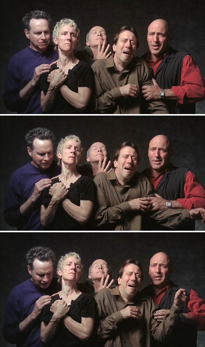 빌 비올라(Bill Viola, 1951-2024)의 대표작은 2000년 전후를 기점으로 쏟아져 나왔습니다. '놀라움의 5중주'(2000)는 남녀 5인의 표정과 몸짓 변화를 45초간 촬영해 15분으로 확장한 작품입니다. 극도의 슬로 모션이 눈을 뗄 수 없게 만듭니다. 실제 속도에선 전혀 알아채지 못했을 인간의 순간적인 눈빛 변화와 몸짓, 빛의 변화와 공기의 흐름까지 잡아낸 걸작입니다. 고속 촬영을 통한 슬로 모션은 특정한 시간을 새로운 공간으로 전이시키고, 시간의 속도를 늦춤으로써 현실을 비껴서 그 너머의 세계를 사유하게 합니다.