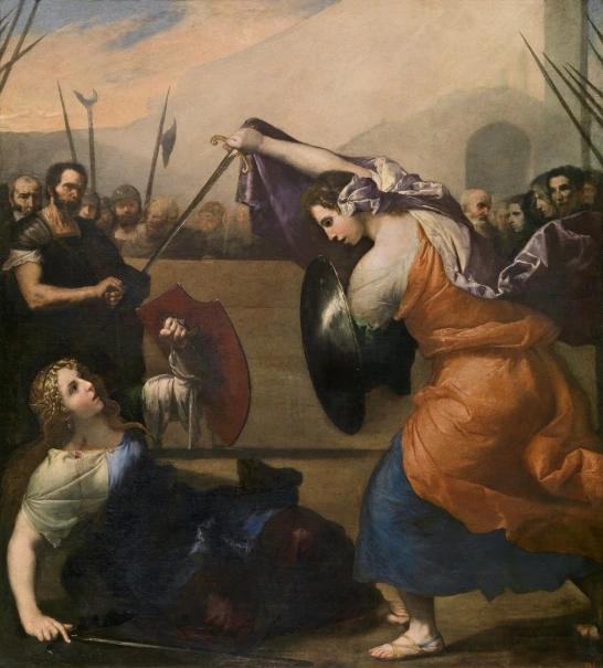 호세 데 리베라(Jose de Ribera, 1591-1652)의 < Women Gladiators>(1636) 작품입니다. 금방이라도 날카로운 칼 끝으로 찌를 것 같은 두 여성 검투사의 치열한 전투 장면을 묘사한 작품입니다. 이 작품은 로마 시대 여성들의 격투 장면을 생생하게 담아내고 있습니다.