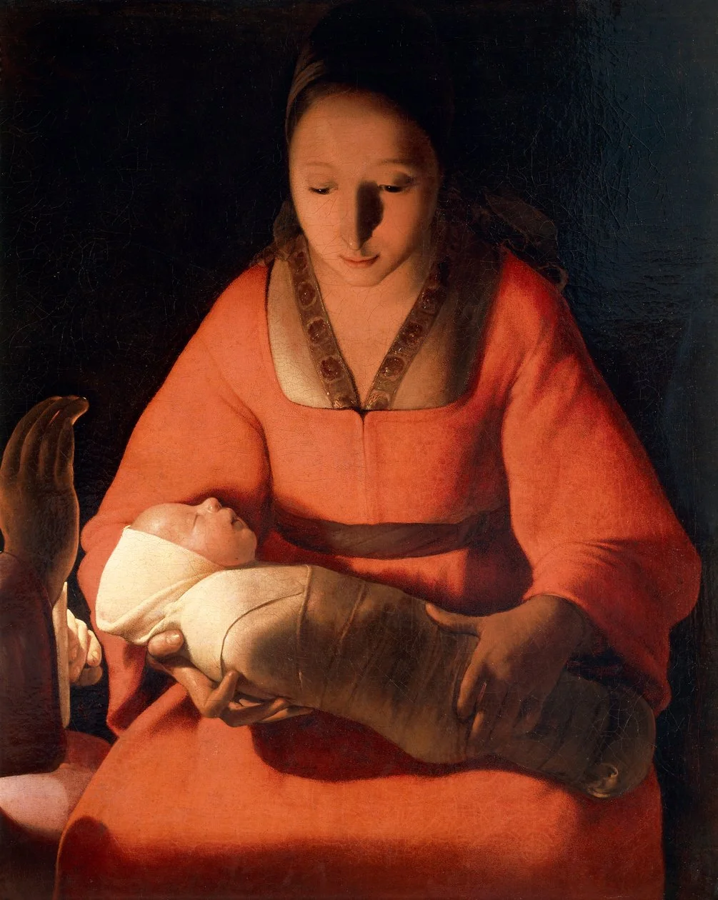 조르주 드 라투르( Georges de la Tour, 1593-1652)의 <The Newborn Child>(1645-1648) 작품입니다. 빛의 강렬한 대비를 보여주는 카라바조의 영향을 받아 키아로스쿠로( Chiaroscuro: 빛과 어두움 또는 명암 대조법)의 표현을 극단적으로 사용하기 위하여 하나의 인위적인 빛(초)을 사용하여 시선을 집중시켰습니다.