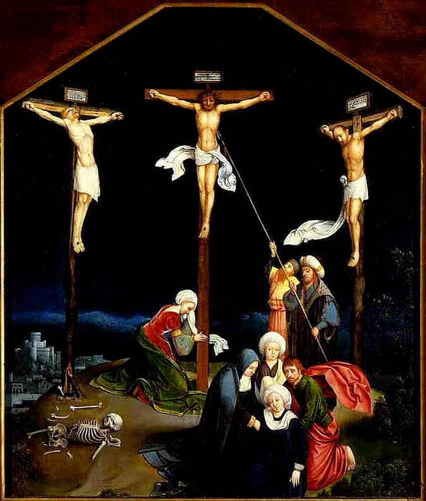오른편의 붉은 옷을 입은 사람은 올라가지 않는 빌립을 들어 올리기 위해 발을 안아 올리고 있습니다. 왼편의 두 남자는 묶인 손을 확인하며 줄을 끌어올리는 표정으로 그려져 있고요. 빌립의 팔뚝과 앙상한 모습의 몸, 눈빛 등이 다음 단계를 상상하게 만듭니다. 이렇듯 더욱 사실적인 묘사로 그림을 바라보는 이들의 가슴속에 그 현장에 함께 하는 듯한 착각을 불러일으키는 작품입니다.